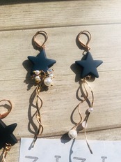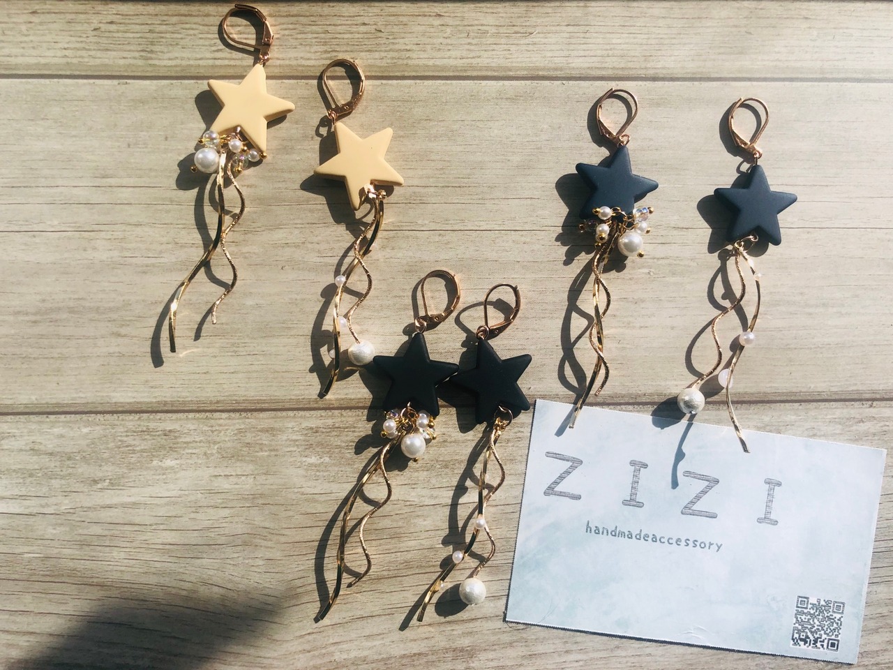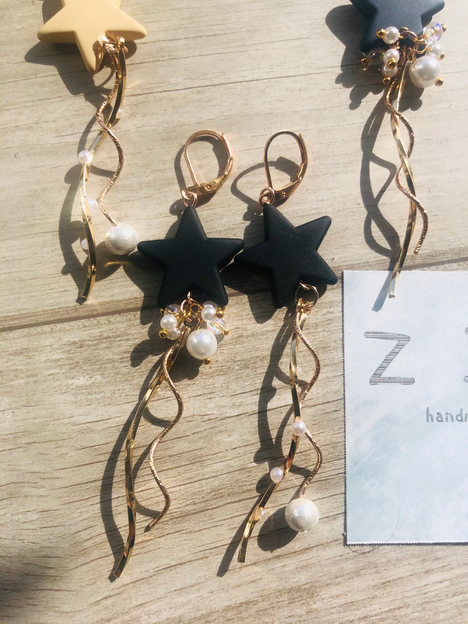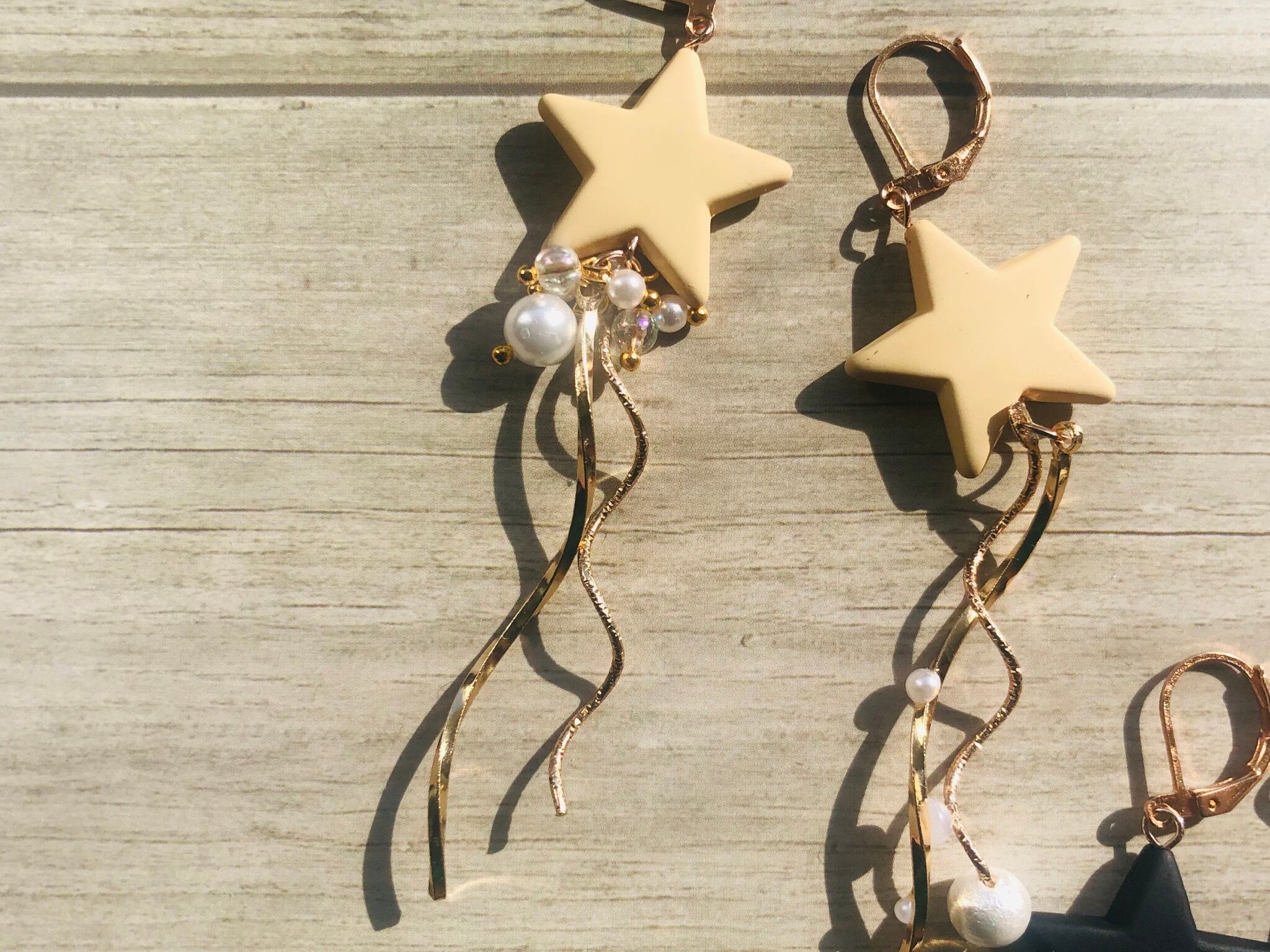 星にじゃらじゃらパールをつけて片方にはくねくねにパール乗せてアシメントリーにしました。