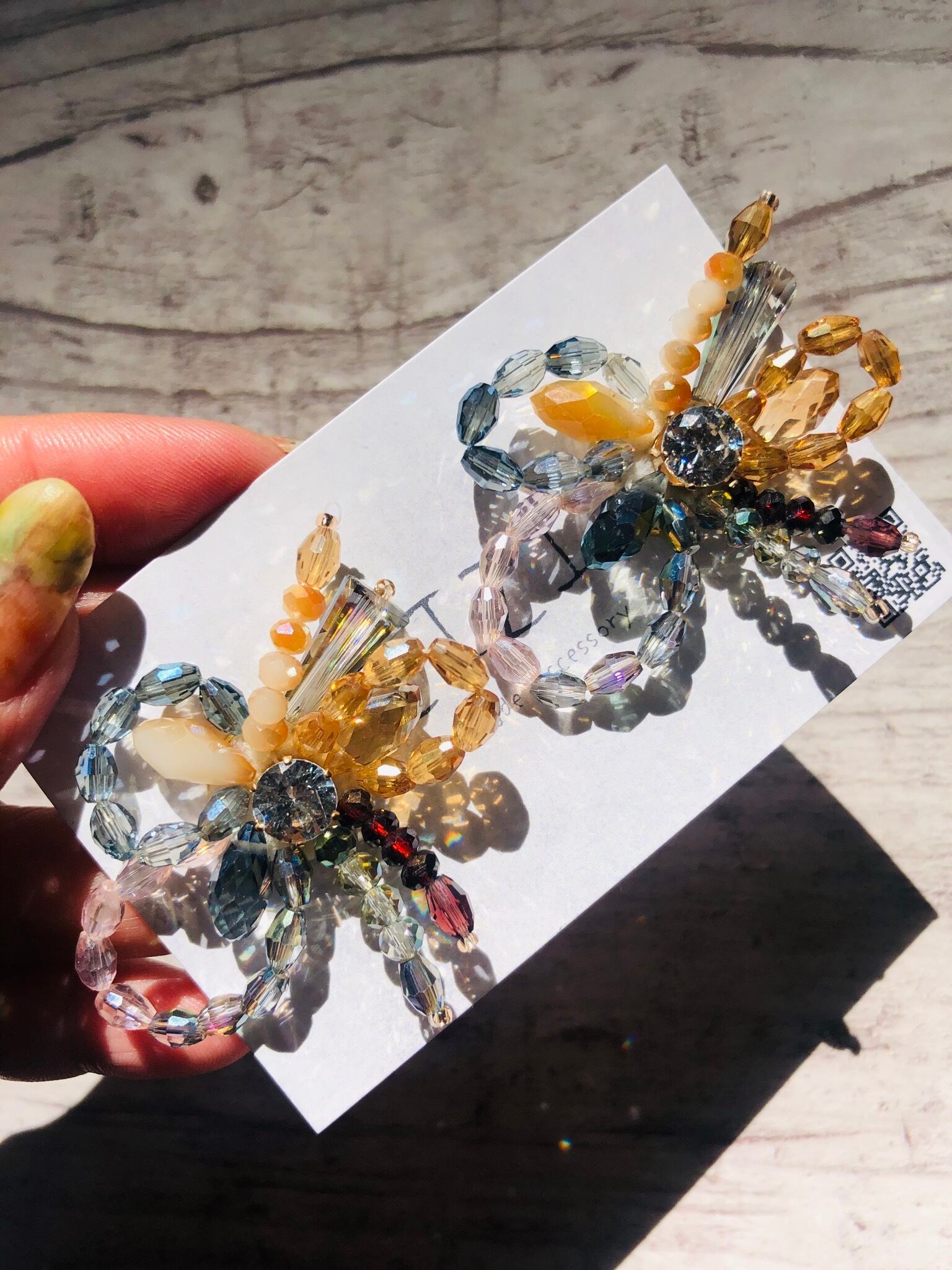 ビジューでキラキラ感が出るほど個性的なデザインで大ぶりなアクセサリーになります。