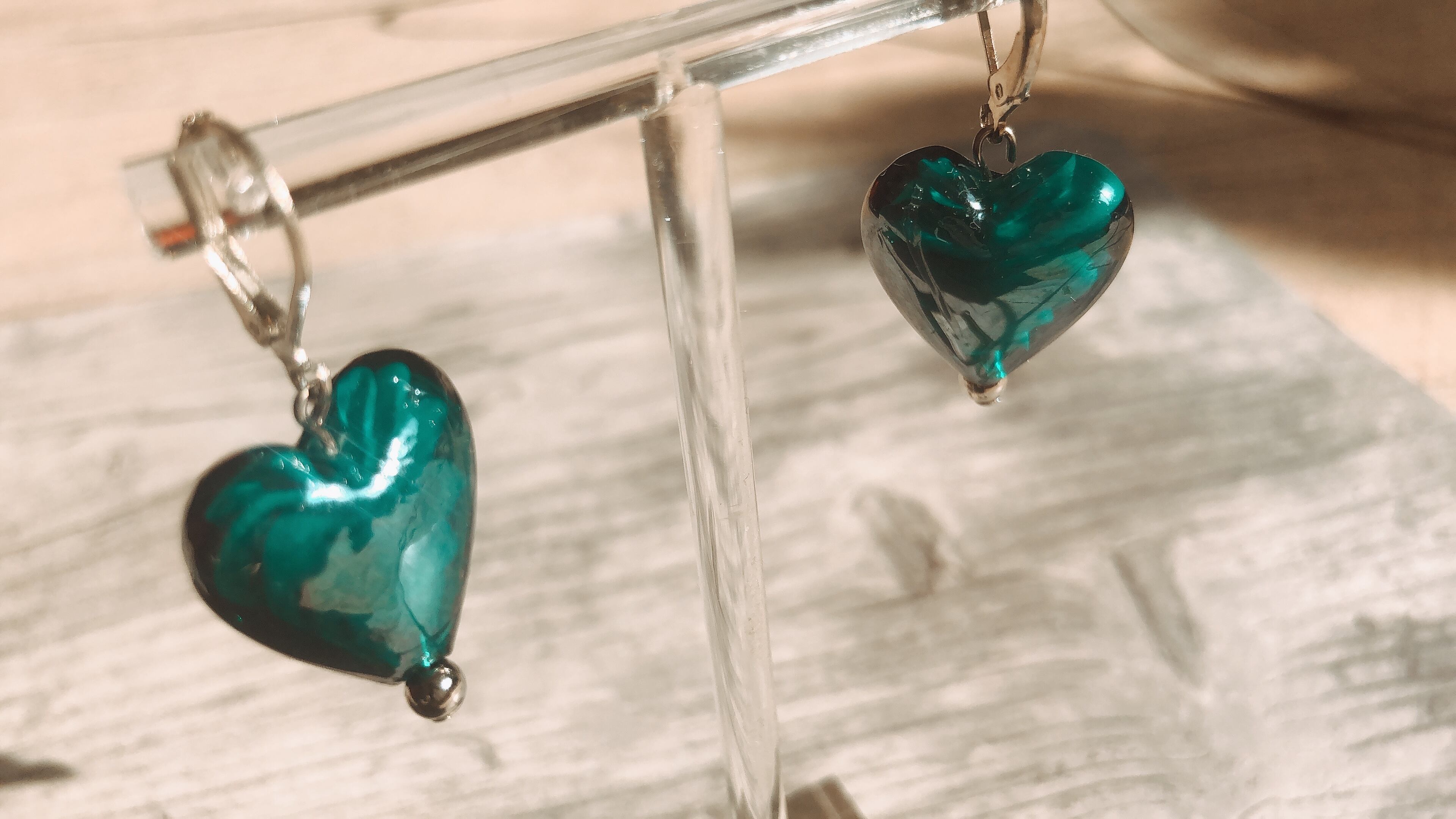 シンプルにハートの形をした単品で引き寄せるほどの美しい青色した実物を見てほしい作品です。
