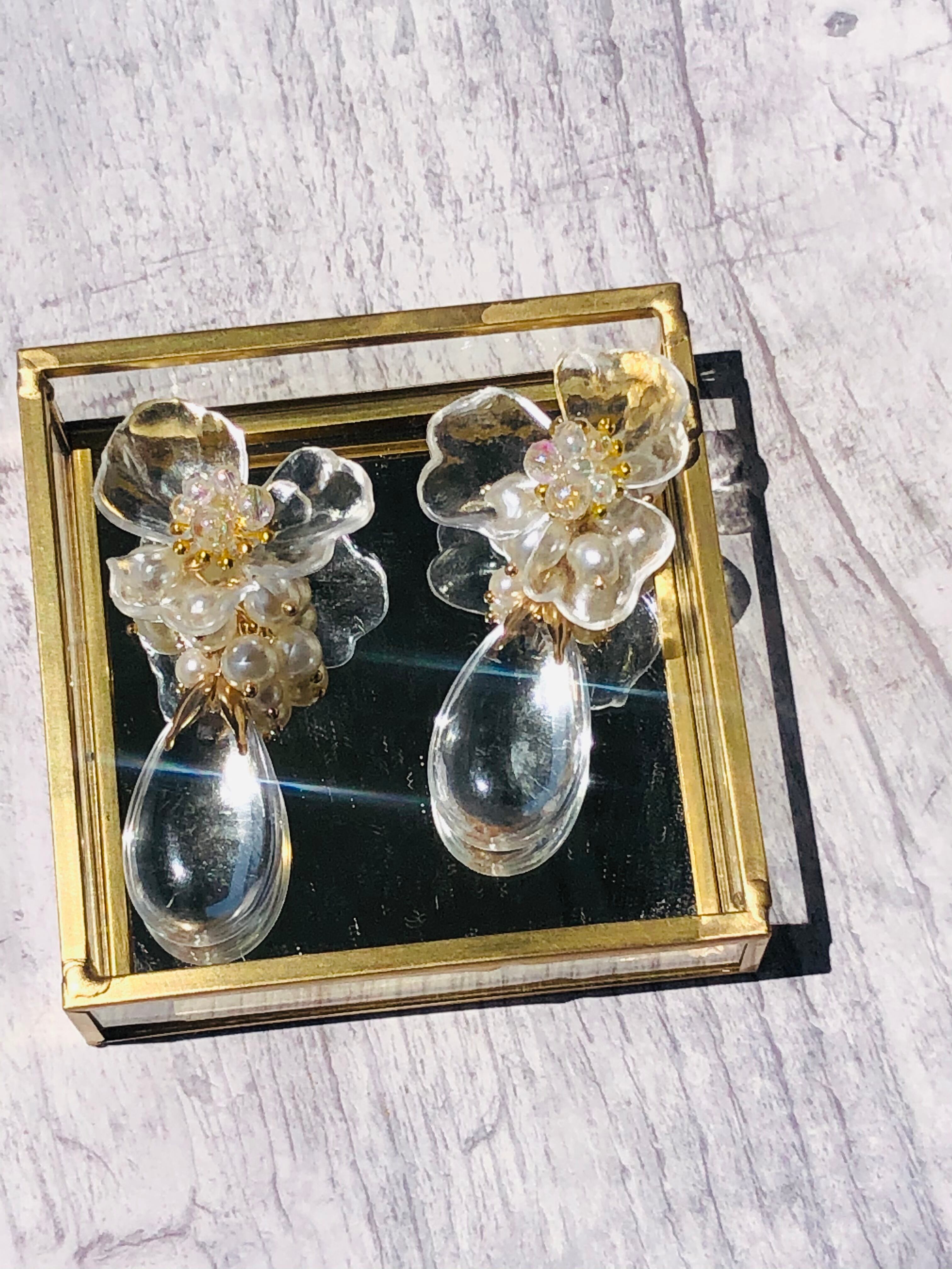 花びらの中にはオーロラビーズが太陽の光によってキラキラ感が増してオーロラ色の変化を楽しめます♡