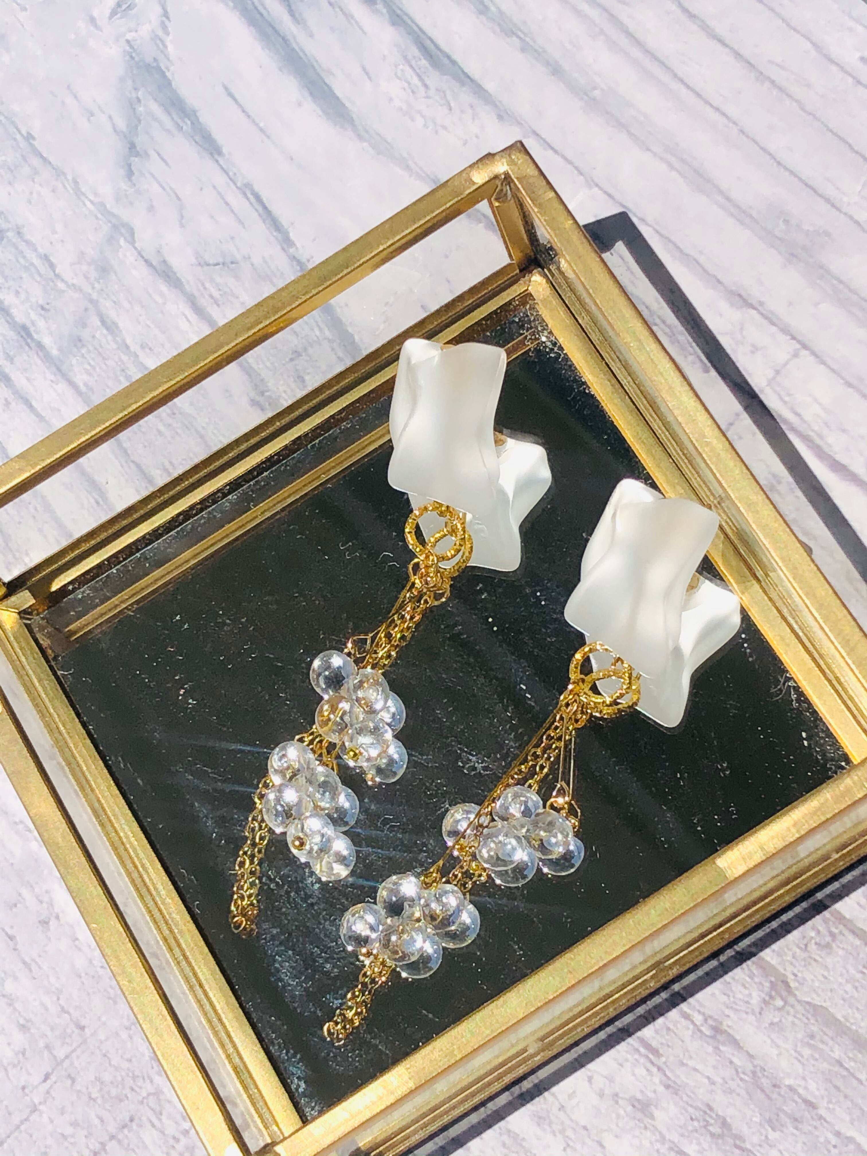 マットしたホワイトにクリアビーズをぶら下げたなんともいえないゆらゆらが可愛い…✩.*˚