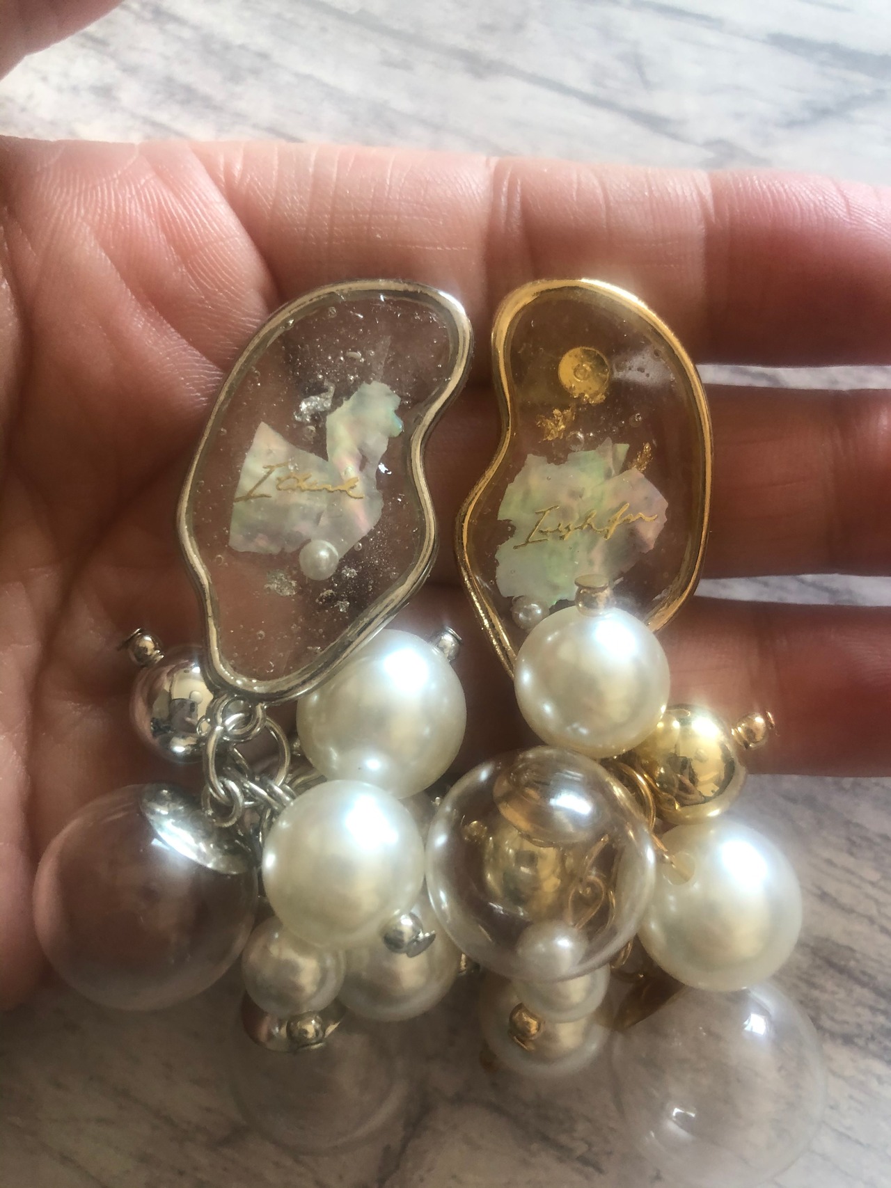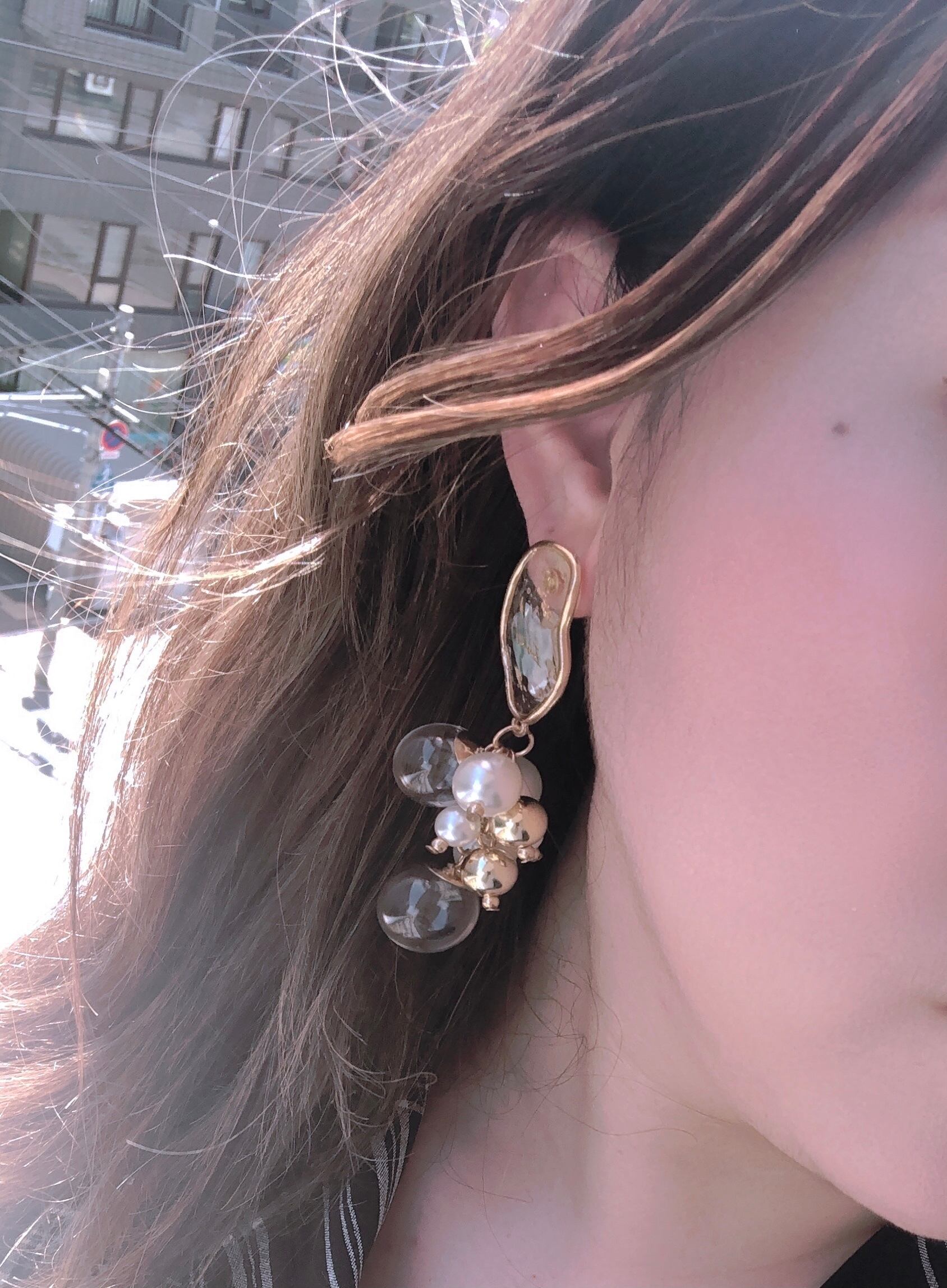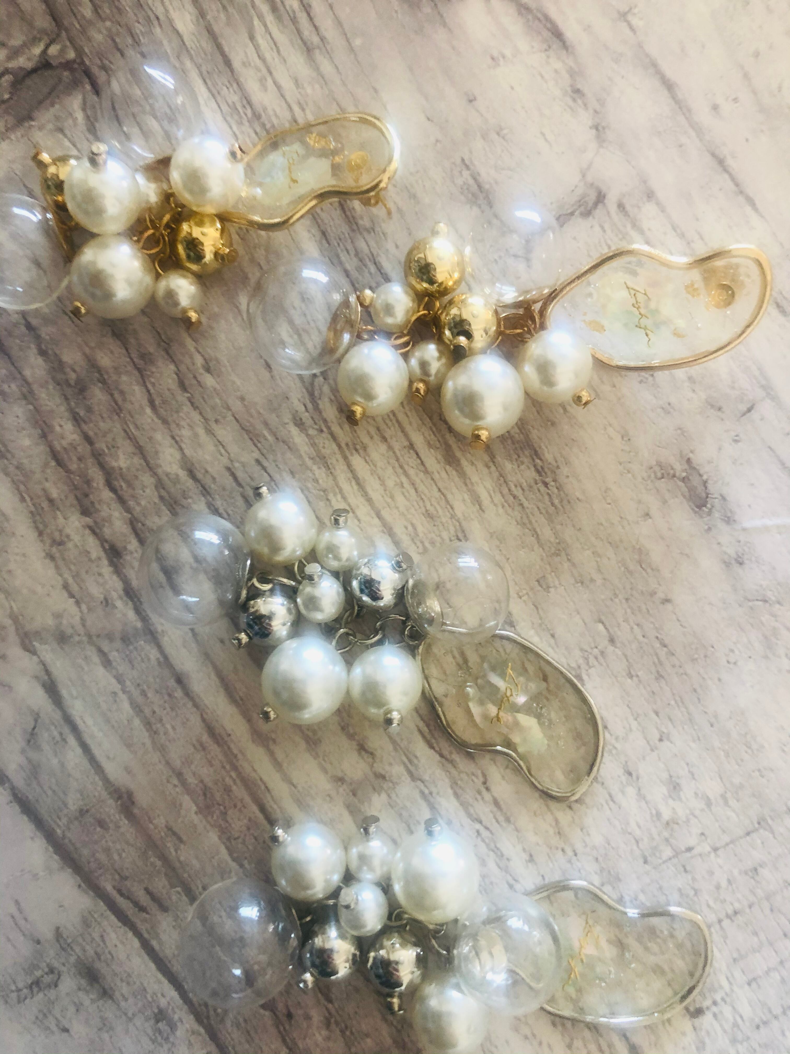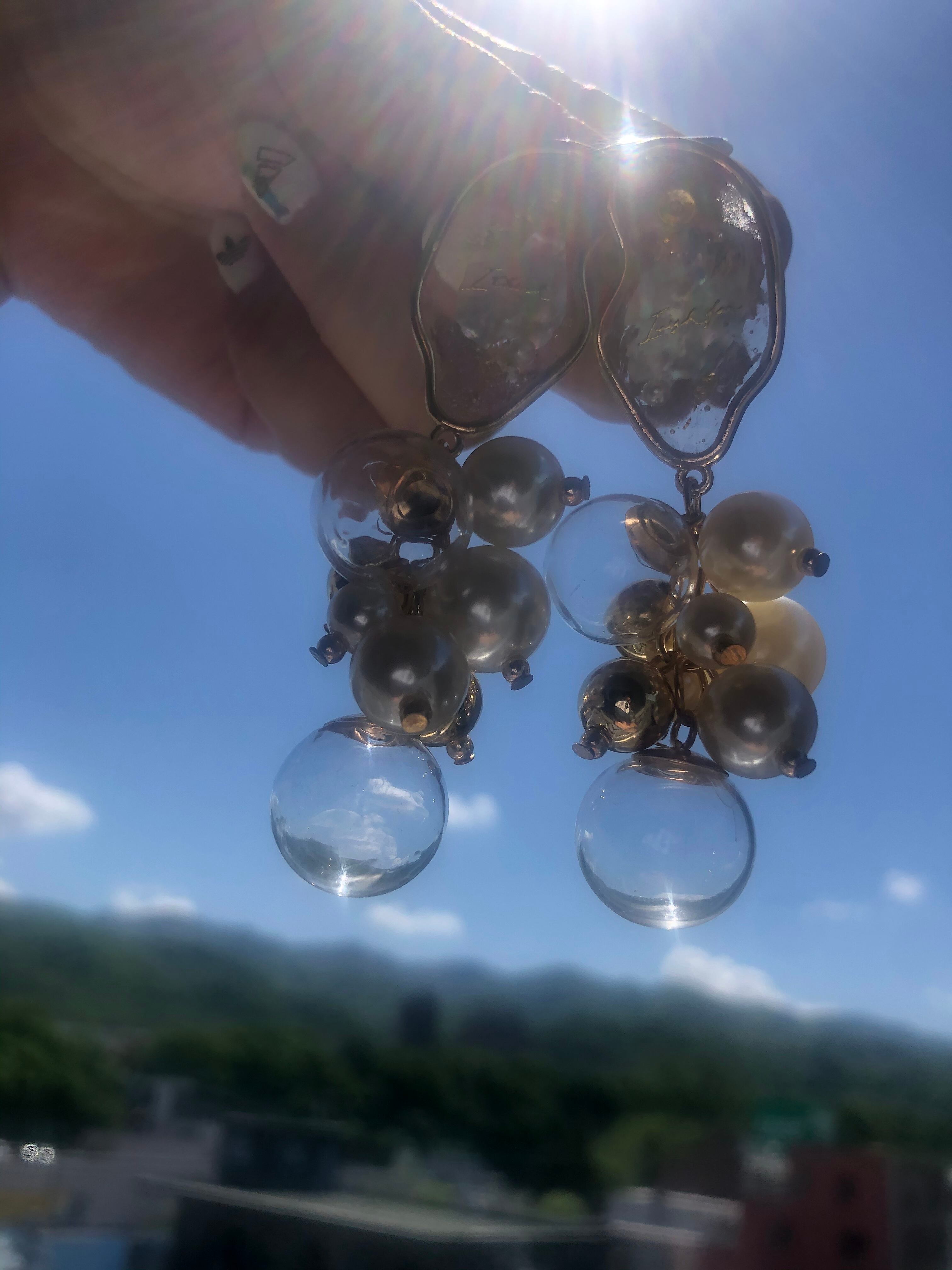ガラスドームとパールをMIXさせたタッセル… それも太陽の光に当てるとキラキラして可愛いです✨