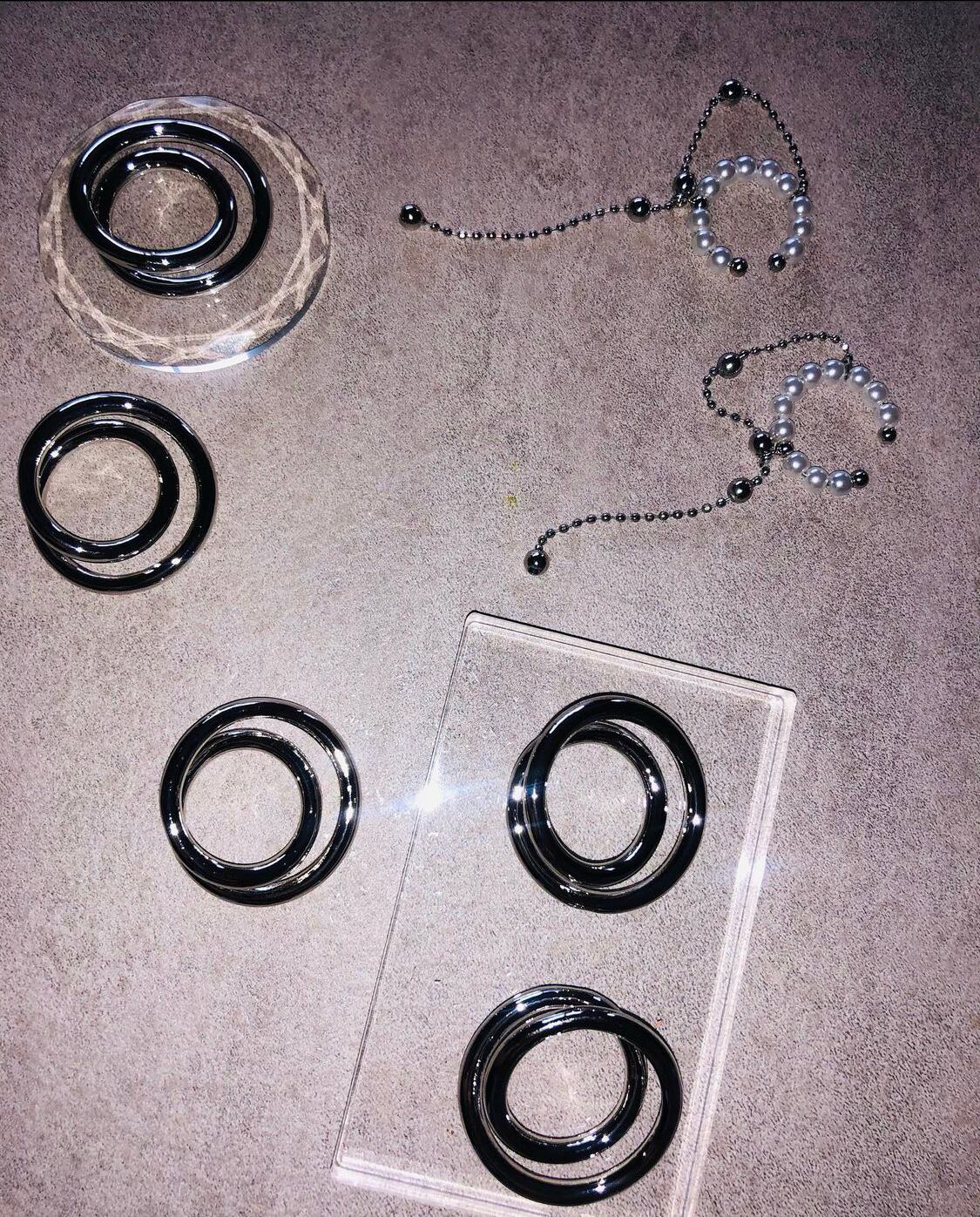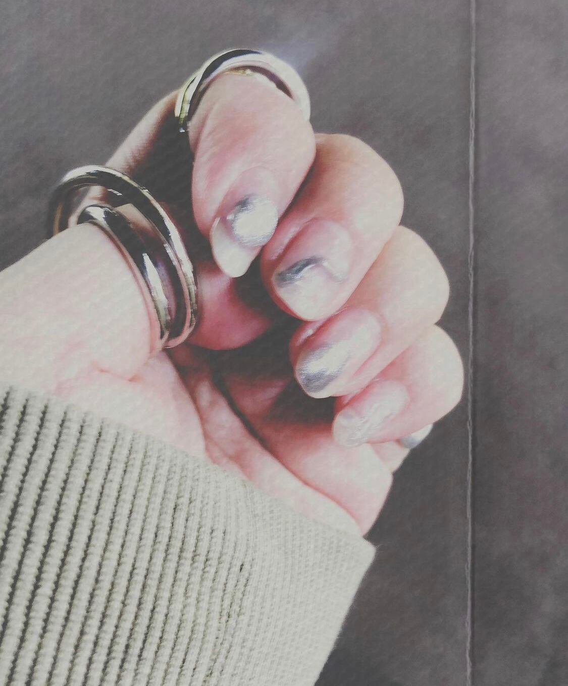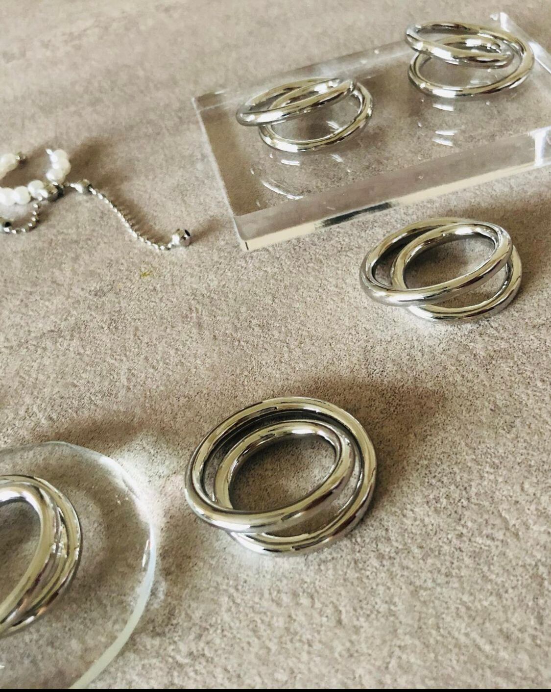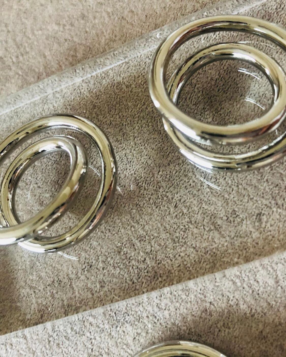 一点でも十分インパクトのあるリングですが、じゃらっと重ね付けもおすすめです。