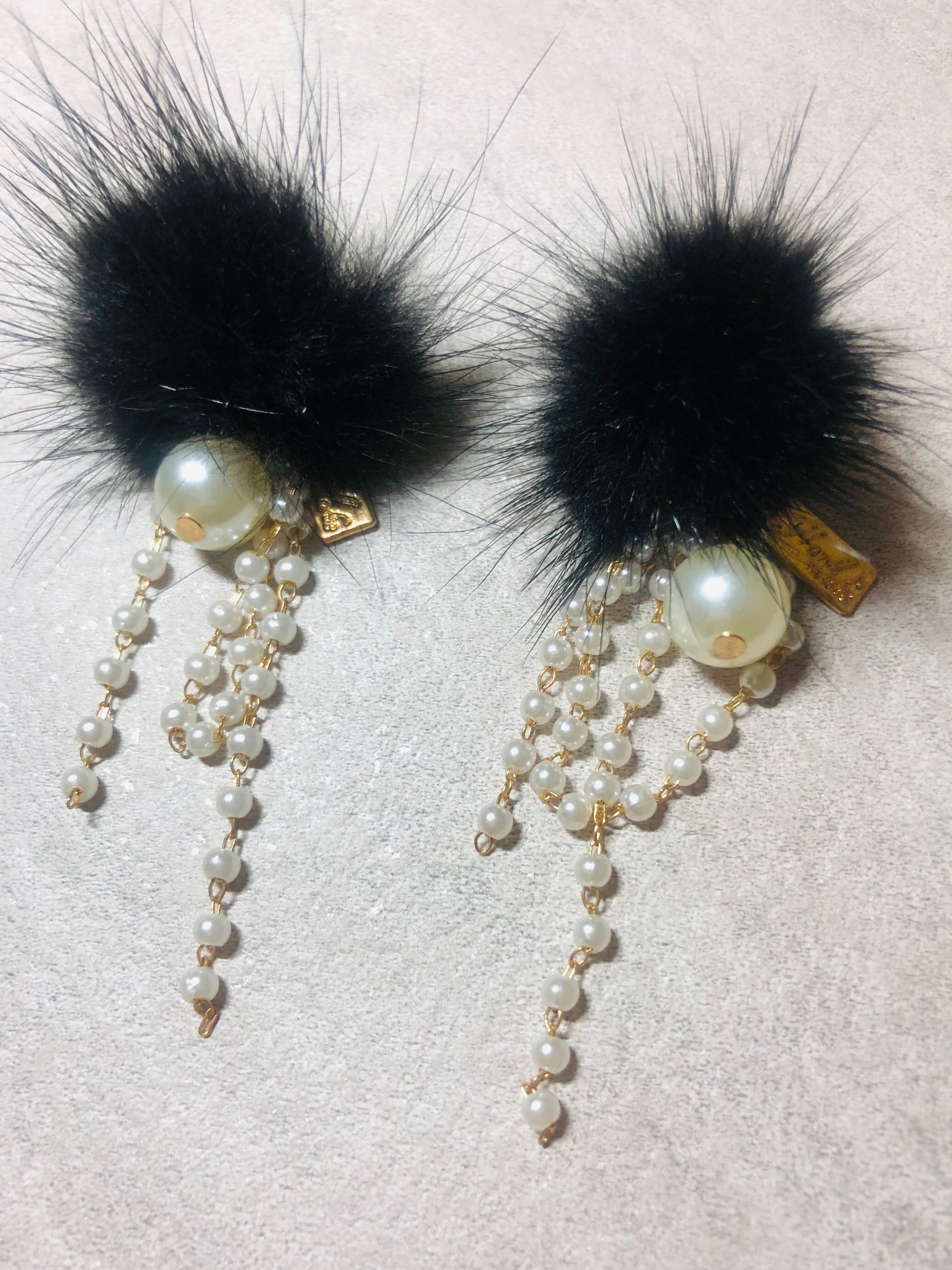 ブラックのファーにぶら下げたパールにゆらゆらと揺れて可愛いです。
