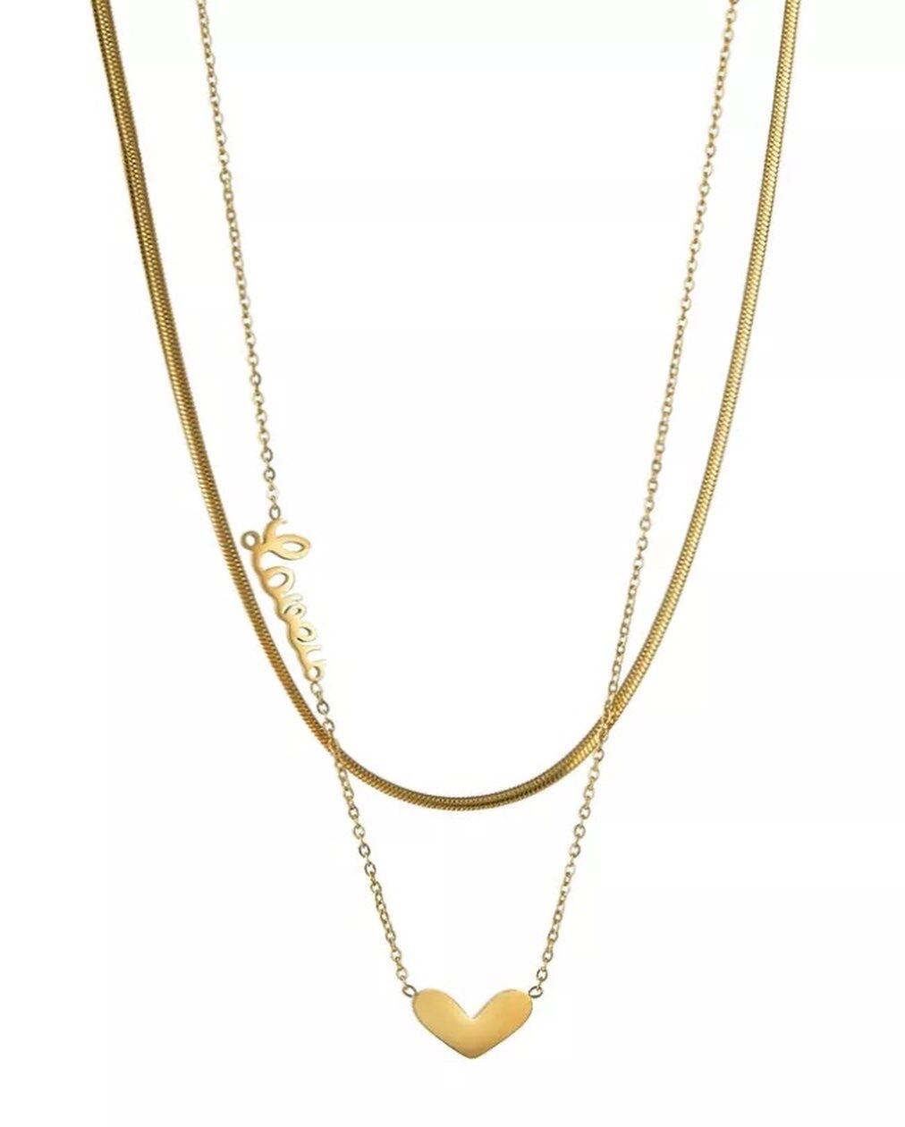 二重ネックレスでハートと英文字で可愛いです。