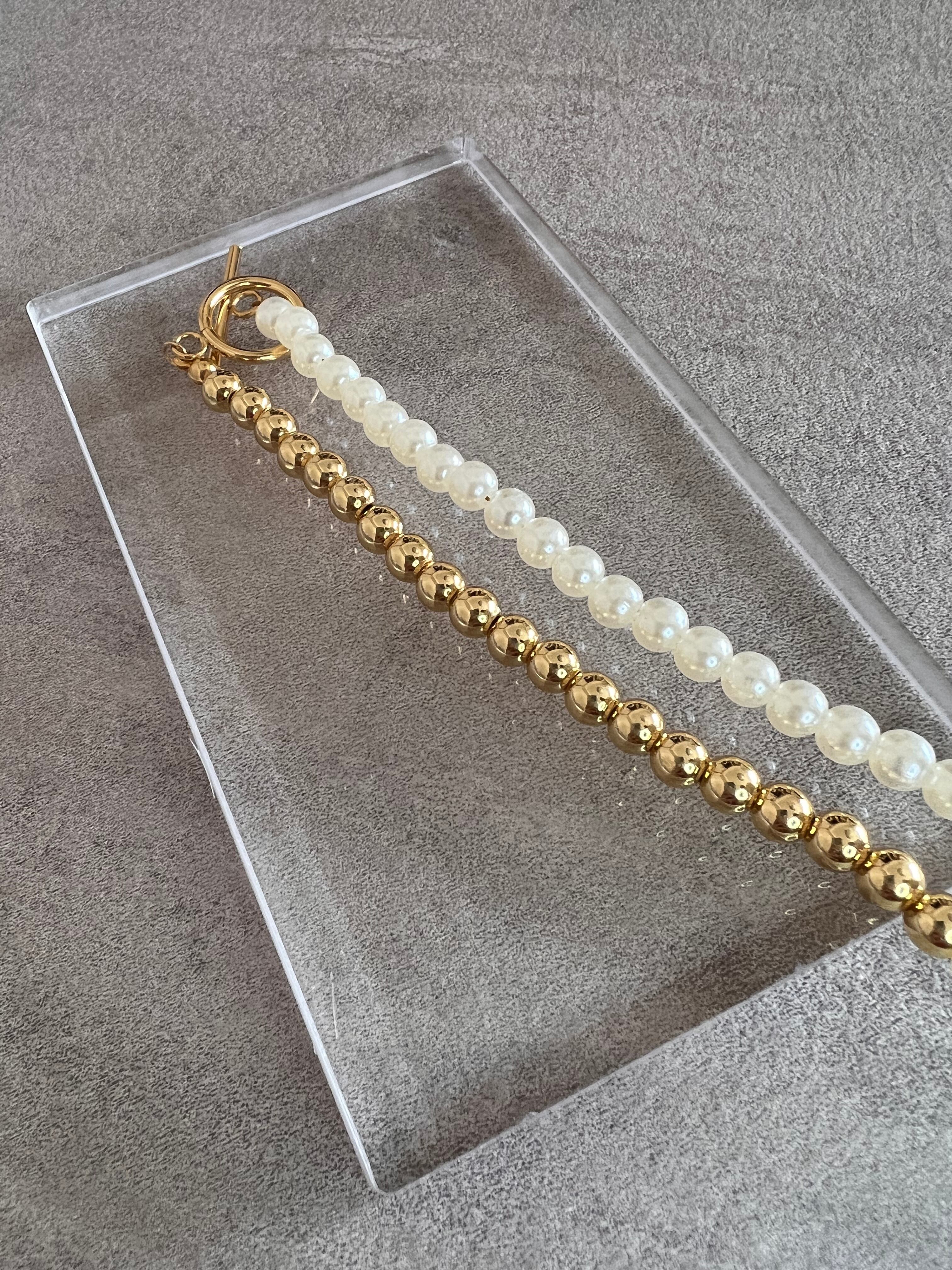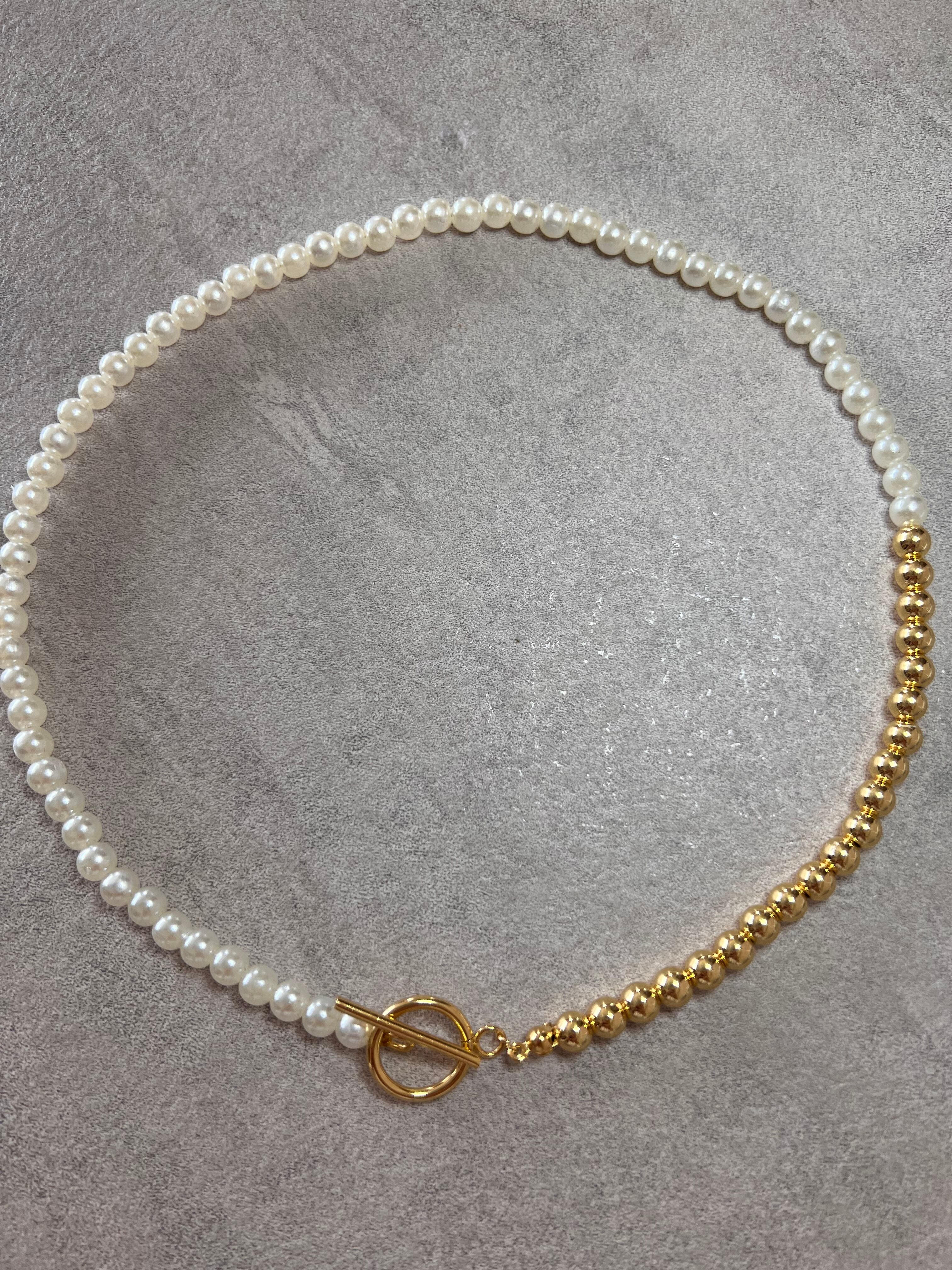 パールとゴールドに組み合わせたネックレス。