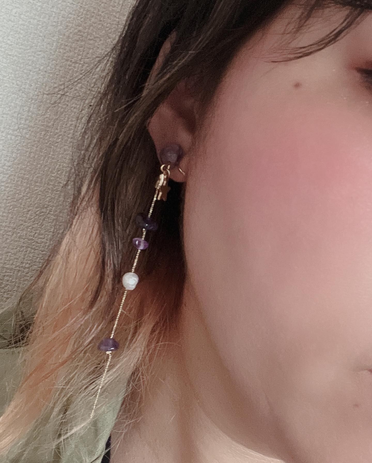 #ロングアクセサリー #ロングアクセサリー好きさんとつながりたい #アメジスト #淡水パール #1点1点違います #いびつな形が可愛い #金属アレルギー対応アクセサリー #オシャレさんと繋がりたい #オシャレ好きな人と繋がりたい #オシャレなママと繋がりたい