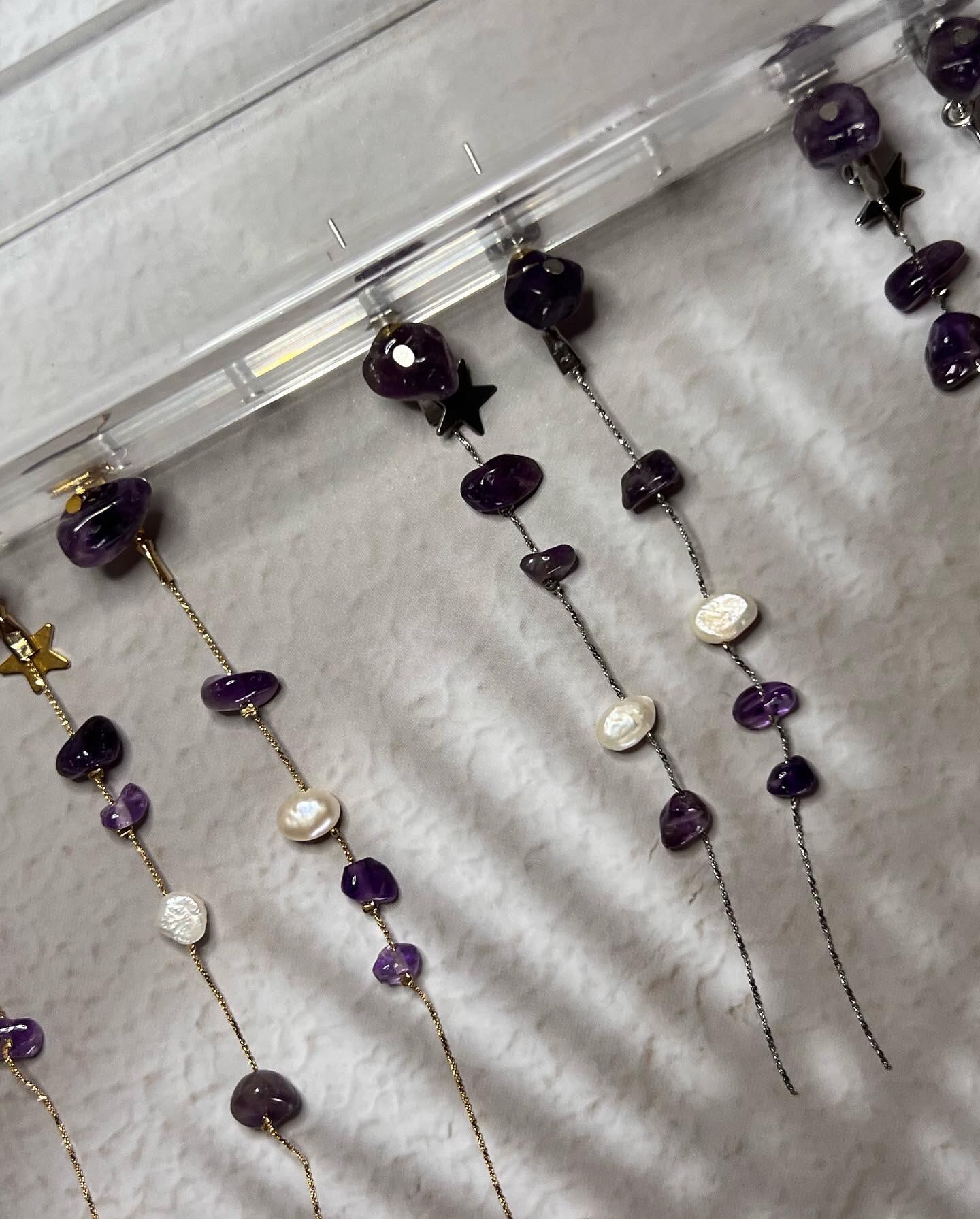 アメジストも淡水パールもそれぞれのいびつな形があって同じ形がない1点1点物になりますෆ ̖́-