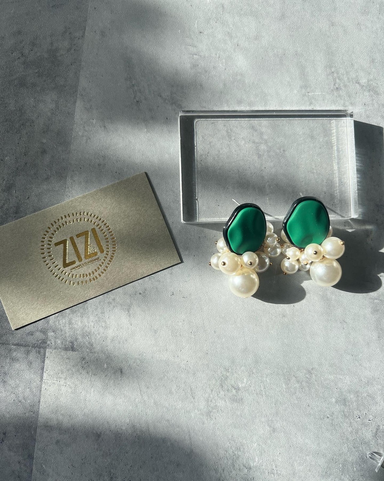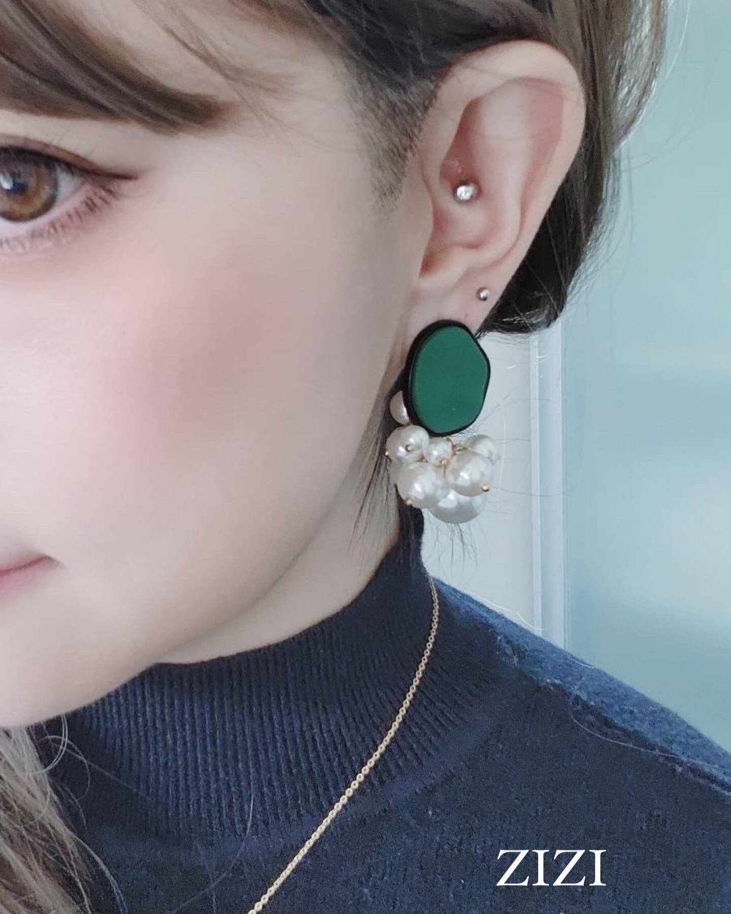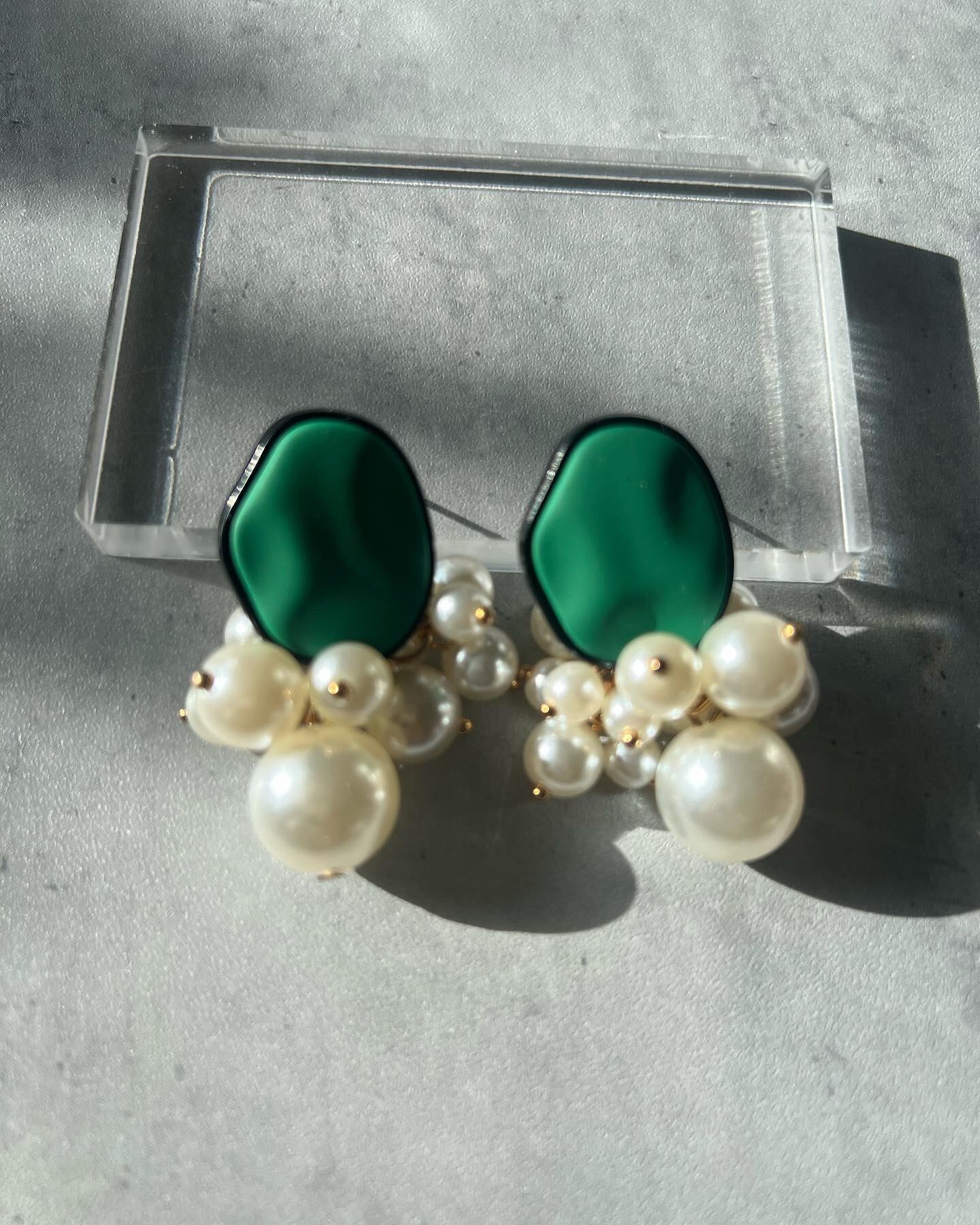 #金属アレルギー対応アクセサリー #差し色グリーンいかが #じゃらじゃらパール #グリーンカボション #上品ピアス #オシャレさんと繋がりたい #アクセサリー好きな人と繋がりたい
