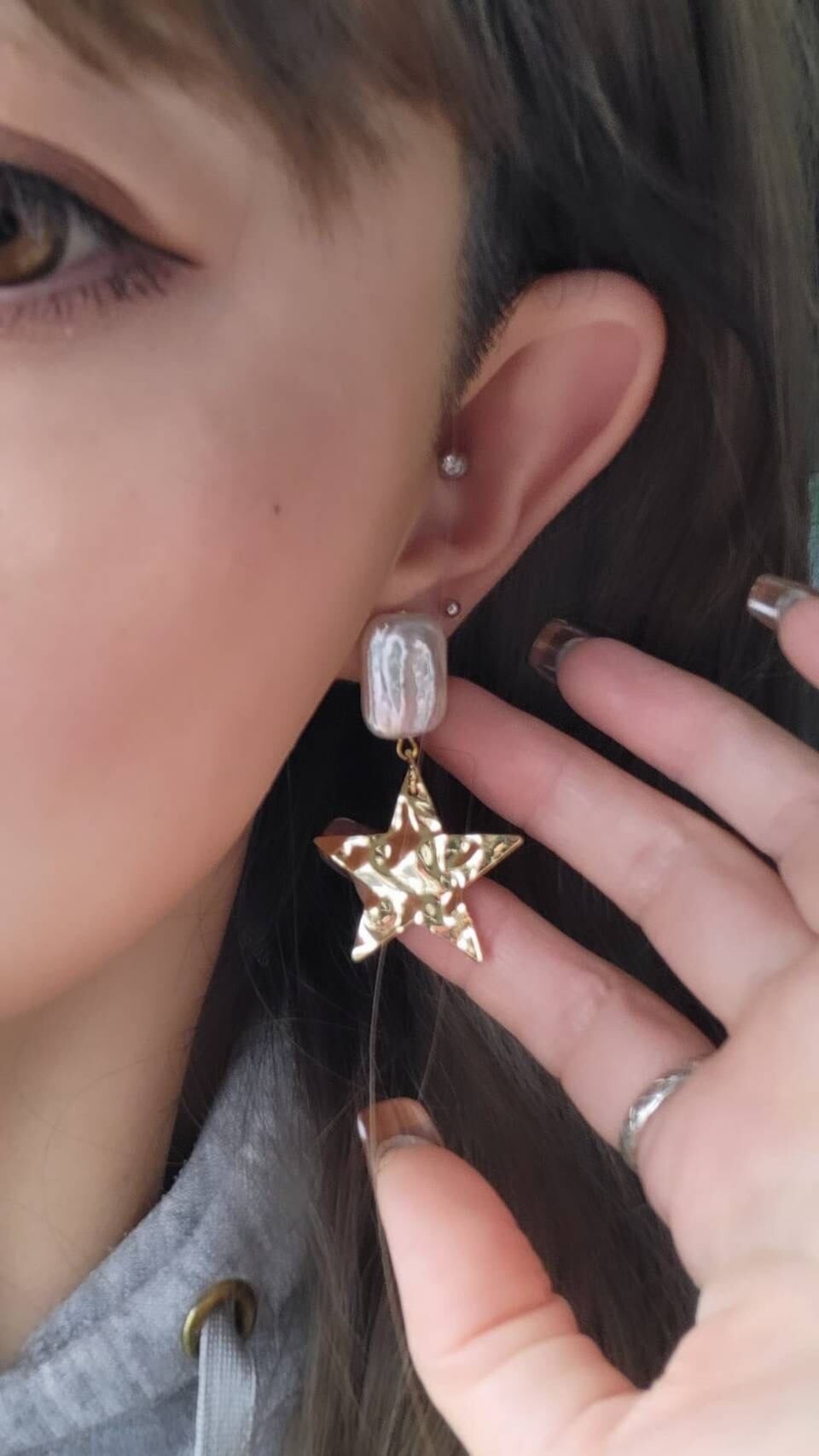 #左右対称アクセ #アシメントリーピアス #アシメントリーイヤリング #スター #星 #金属アレルギー対応アクセサリー #大ぶりピアス #大ぶりイヤリング #スクエア型バロックパール #バロックパールアクセサリー #コットンパール #スター #星 #アクセサリー好きな人と繋がりたい